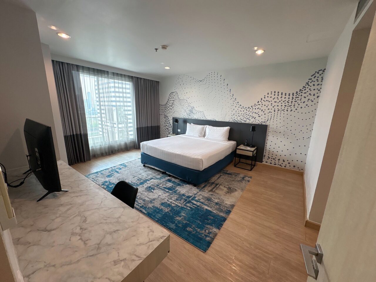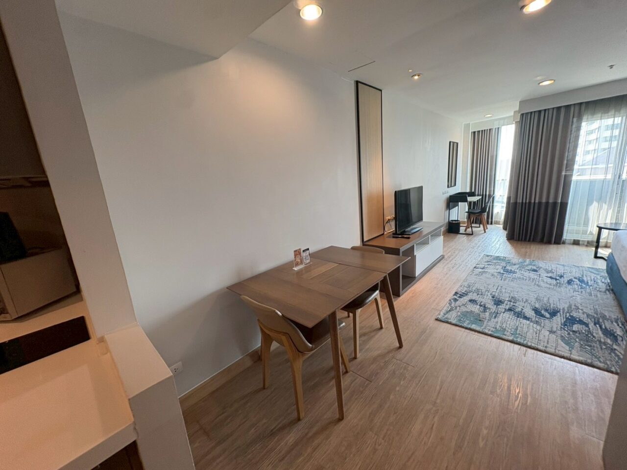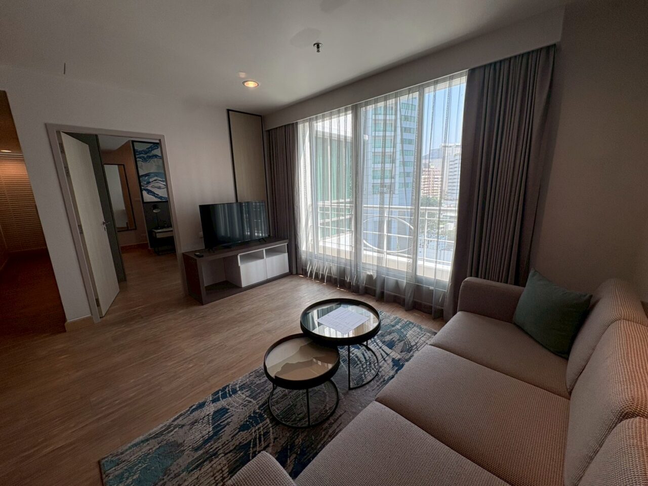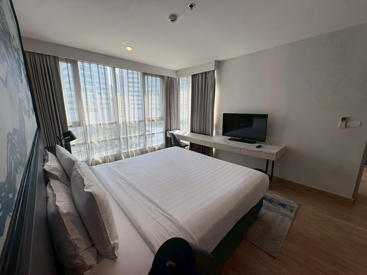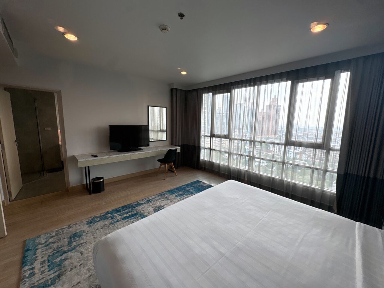 アソーク中心という立地と、充実した運動設備が魅力のホテル型レジデンスです。 24時間ジムやゴルフレンジなど、付帯設備はホテルとしては充実しており、日常的に体を動かす方には利便性の高い環境です。 A棟はデザイン性を意識した内装仕上げが特徴で、バルコニーからはベンジャキティ公園を広く望む住戸もあり、都心立地ならではの開放感が感じられます。 同じShama内でも、収納や落ち着きを重視したB棟とは異なり、ホテルらしい明るさや雰囲気を求める方に向いた棟構成です。 一方で、フロント周辺は時間帯によって人の出入りがあり、居住型コンドミニアムのような静かな環境を最優先される方とは好みが分かれる可能性があります。 立地・機動力・設備に加え、デザイン性や景観を重視される方に適した一棟です。