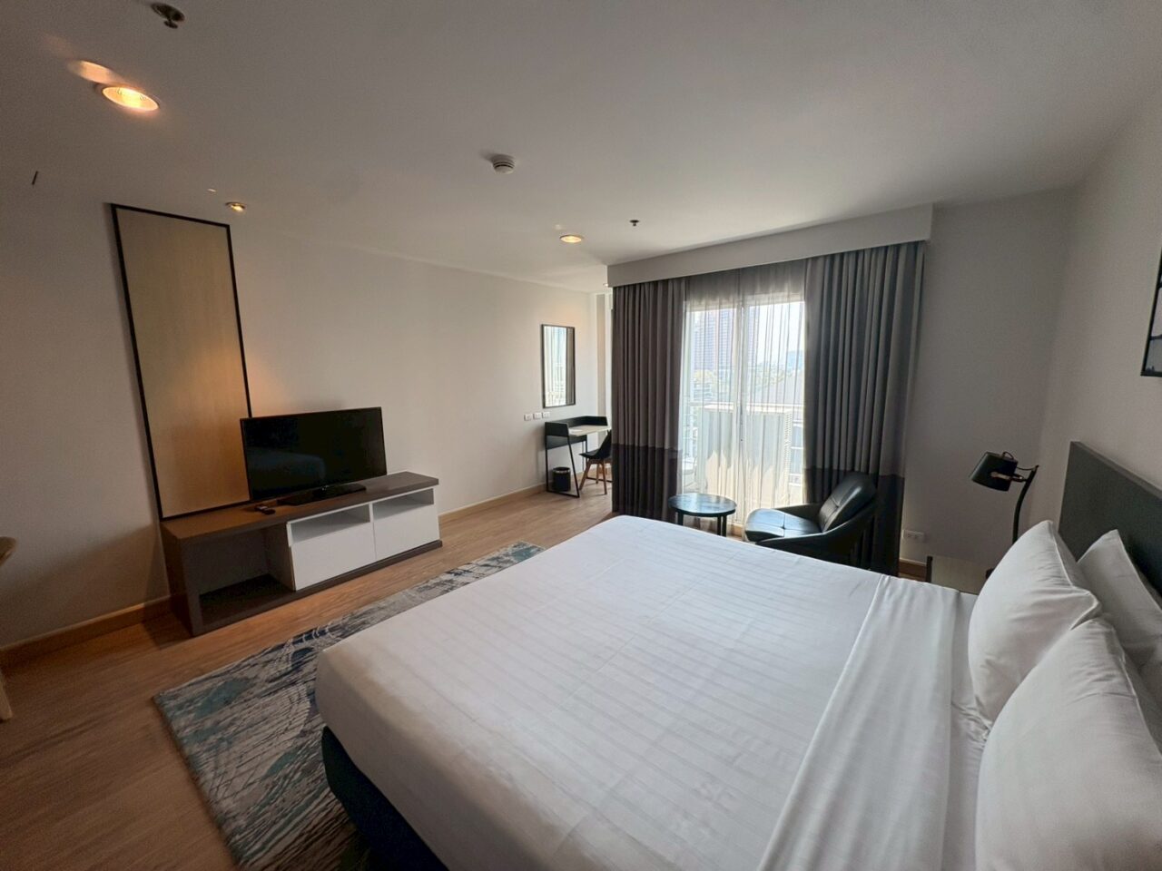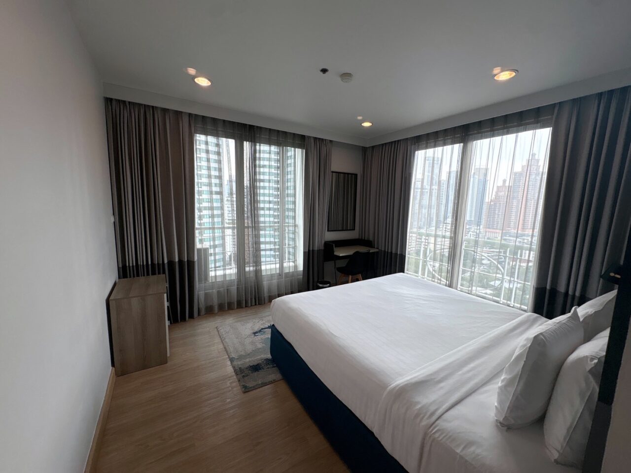 アソーク中心エリアに位置する、ホテル運営型のサービスレジデンスです。 館内は一日を通してフロント周辺に動きがあり、国際色のある雰囲気が感じられます。 2019年にASC Interiorによって改装が行われており、清潔感のある内装と安定した設備コンディションが保たれています。 主要なファシリティ(ジム・プール・ゴルフレンジ等)はA棟側に集約されています。 客室は短期滞在にも対応したホテル仕様となっているため、一般的な居住型コンドミニアムとは異なる空気感を感じられる場合があります。 静かな居住環境を最優先される方には好みが分かれる可能性がありますが、管理体制や立地、サービス面を重視される方にとっては安心感のある選択肢となる物件です。